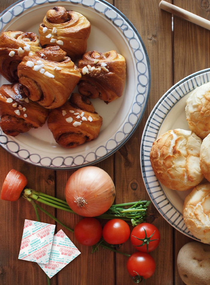 Oxygen in sealed packaging is absorbed to prevent the growth of mold and also prevent deterioration by oxidation.