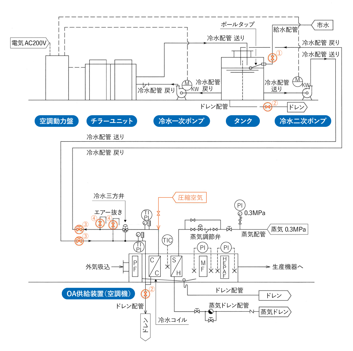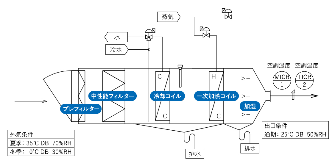 工場の外は、季節や天候によって気温や湿度が刻々と変化します。特に、医薬品を製造する際、流動層造粒装置やコーティング装置などは、製品に直接乾燥用の空気を送り込むため、供給される空気のコンディションが製品の品質を大きく左右します。