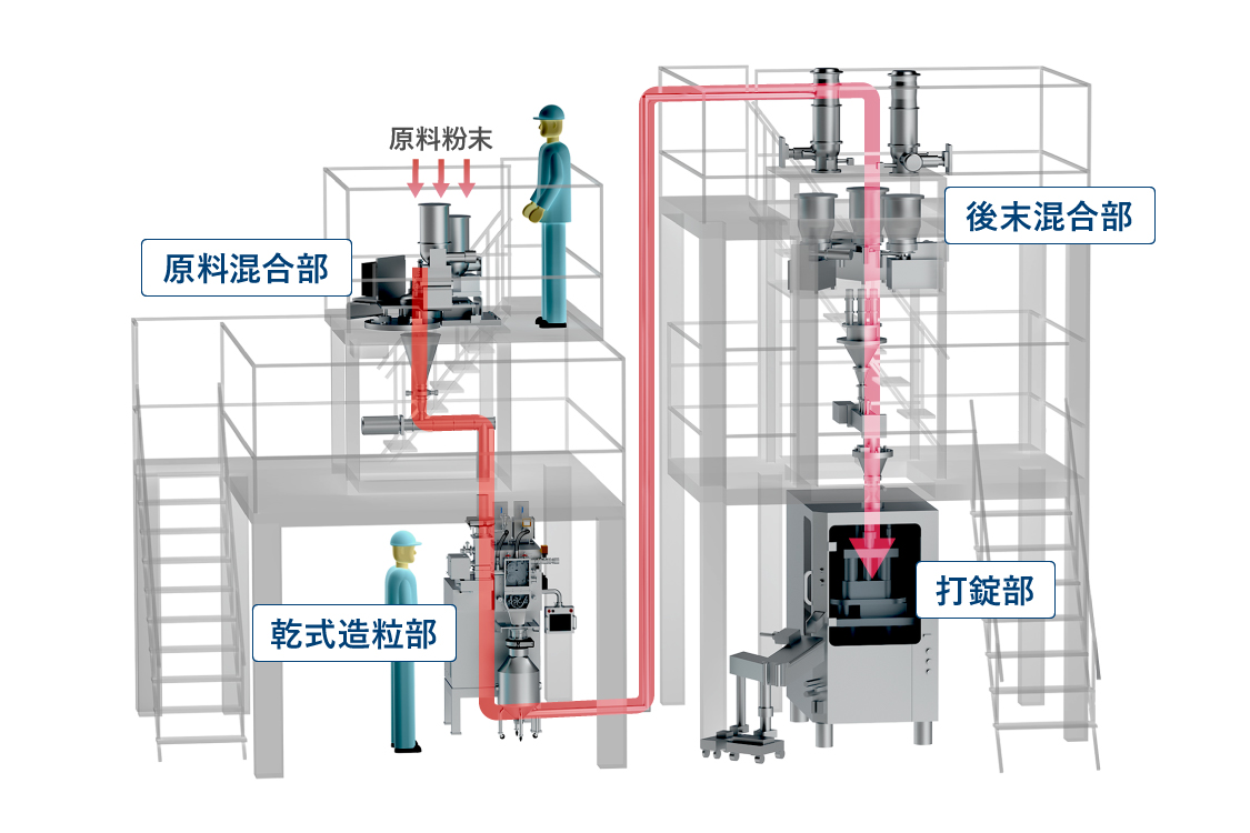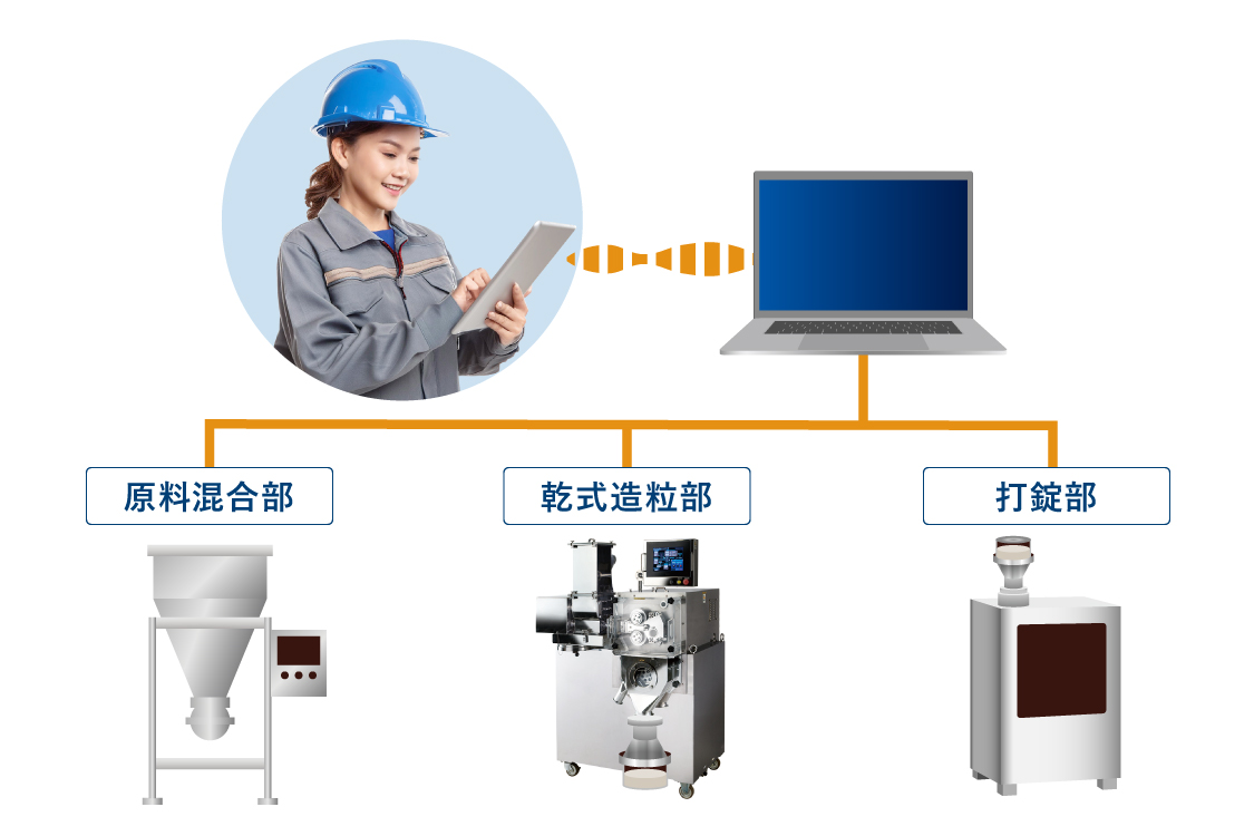 - 原料混合から打錠までをシームレスに連携